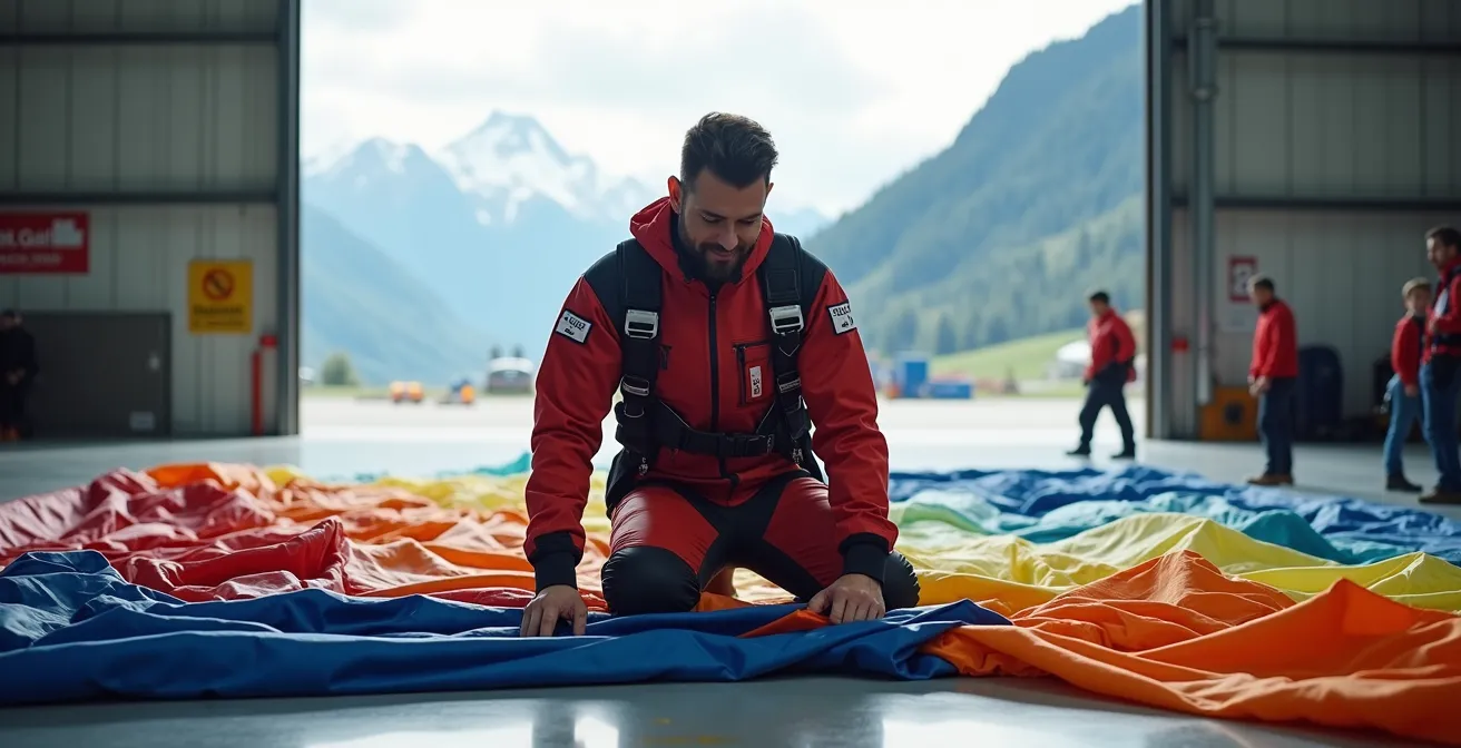 En parachutisme, « protéger son dos » est une expression qui va bien au-delà de la posture physique. C’est une métaphore pour « assurer ses arrières », et la protection la plus fondamentale réside dans la confiance absolue en son matériel. Cette confiance ne naît pas de l’ignorance, mais d’une connaissance intime et d’une maintenance rigoureuse de son équipement. Le pliage est au cœur de cette démarche. Chaque séance de pliage est une opportunité d’inspection, un contrôle qualité personnel avant chaque saut.