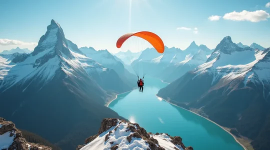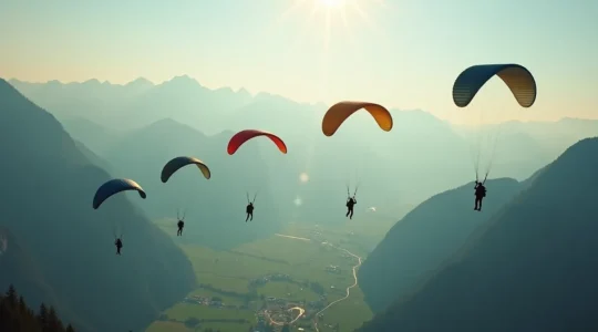 Les zones situées dans les Préalpes et les Alpes, comme celle d’Interlaken, offrent des panoramas exceptionnels sur les sommets enneigés. Ces sites d’altitude présentent toutefois des spécificités météorologiques : conditions changeantes, vents de montagne, air plus rare affectant les performances des voiles. Ils conviennent particulièrement aux parachutistes ayant déjà une certaine expérience.