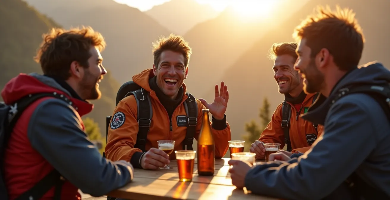 Cette gestion de l’énergie est cruciale. L’hydratation est un réflexe constant, et les conversations, bien que légères, tournent souvent autour des sensations de la journée, permettant d’évacuer la tension et de partager l’expérience. L’environnement lui-même, souvent situé dans des cadres naturels spectaculaires comme les Alpes suisses, contribue à cet apaisement. C’est un moment où le groupe passe de l’état d’hyper-concentration requis en vol à un état de relâchement partagé.